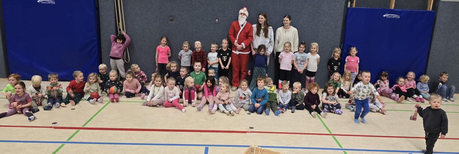 Ein ganz besonderes Highlight erlebten unsere jĂŒngsten Vereinsmitglieder kurz vor Weihnachten: Am 17. Dezember 2025 besuchte der Weihnachtsmann das Kinderturnen in unserer groĂen Sporthalle.