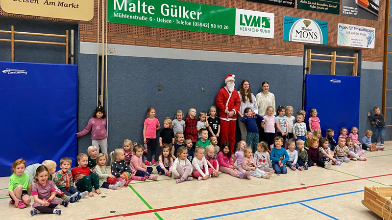 Rund 75 Kinder aus dem Kinder- und Eltern-Kind-Turnen warteten gespannt, als sich plötzlich die TĂŒren öffneten und der Weihnachtsmann höchstpersönlich die Halle betrat. Die Begeisterung war riesig â strahlende Kinderaugen, staunende Gesichter und eine wundervolle, festliche AtmosphĂ€re erfĂŒllten die Halle.