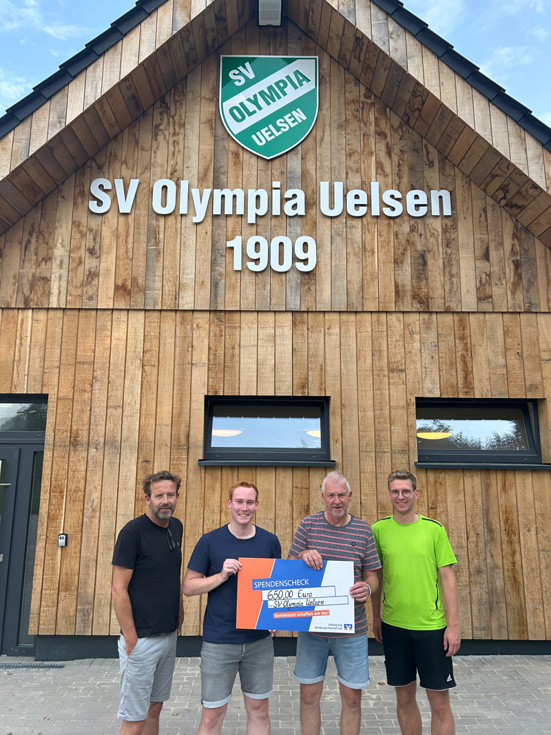 Durch die Organisation einer Tombola, dem Verkauf von Speisen und Getränken sowie Spenden diverser Firmen konnte das Organisationsteam um Frank Mers eine Spendensumme von 650,00€ einbringen. Diese wurde anlässlich der fast abgeschlossenen Vereinsheimsanierung an den SV Olympia Uelsen übergeben.